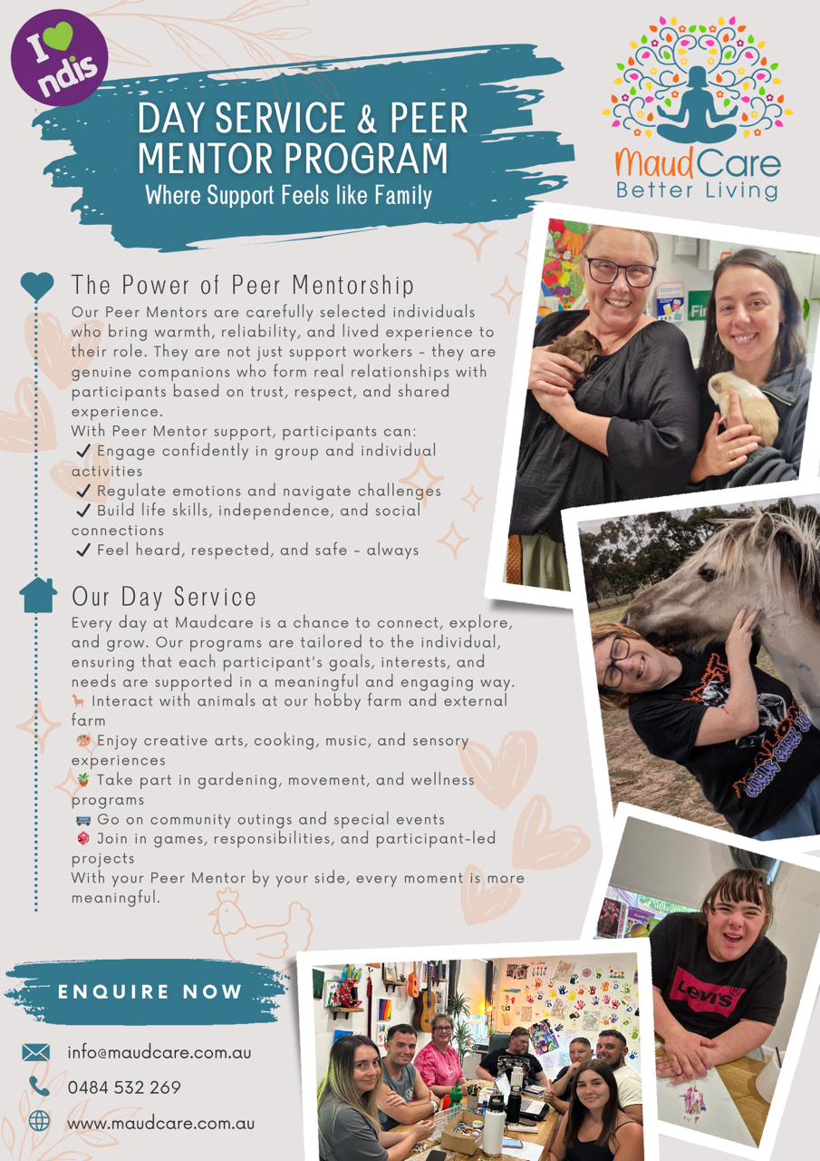 At MaudCare, our Peer Mentors are dedicated to supporting participants on their journey towards greater independence, fulfilment, and success.
