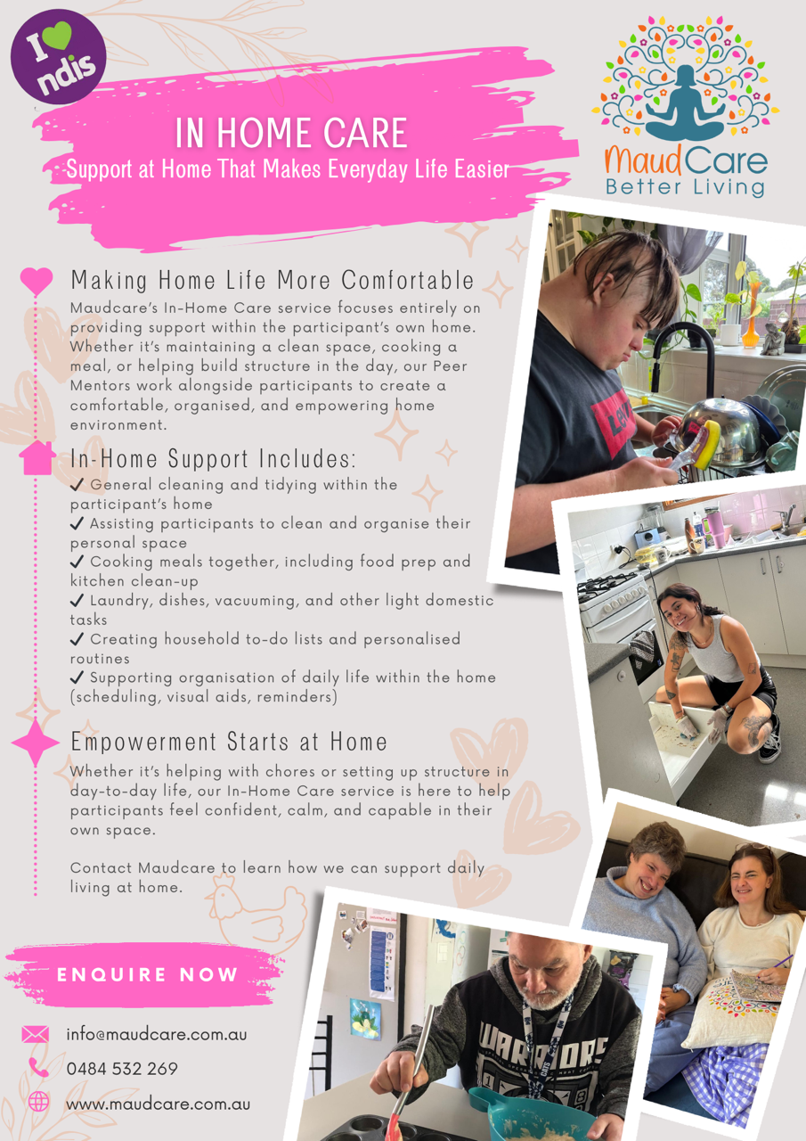 Maudcare is an NDIS provider offering Support Services for people with a disability.